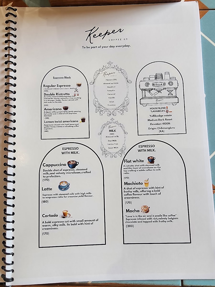 Keeper coffee co Menu
